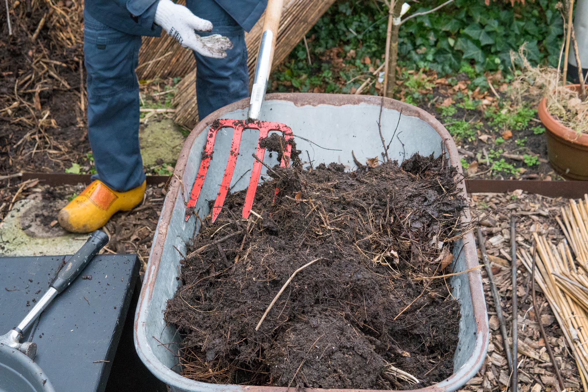 In korte tijd van een overvloed aan paddestoelen in de tuin naar de eerste tekenen van het naderende voorjaar. De eerste sneeuwklokjes vertonen zich aan de buitenwereld. En ook wij komen langzaam uit de winterslaap. De eerste werkzaamheden hebben we inmiddels achter de rug. Met zijn vijven hebben we gesnoeid en opgeruimd. Ook de composthoop is gekeerd en de bruikbare aarde heeft in de tuin een plekje gekregen. In twee uren tijd kun je samen een hoop doen.