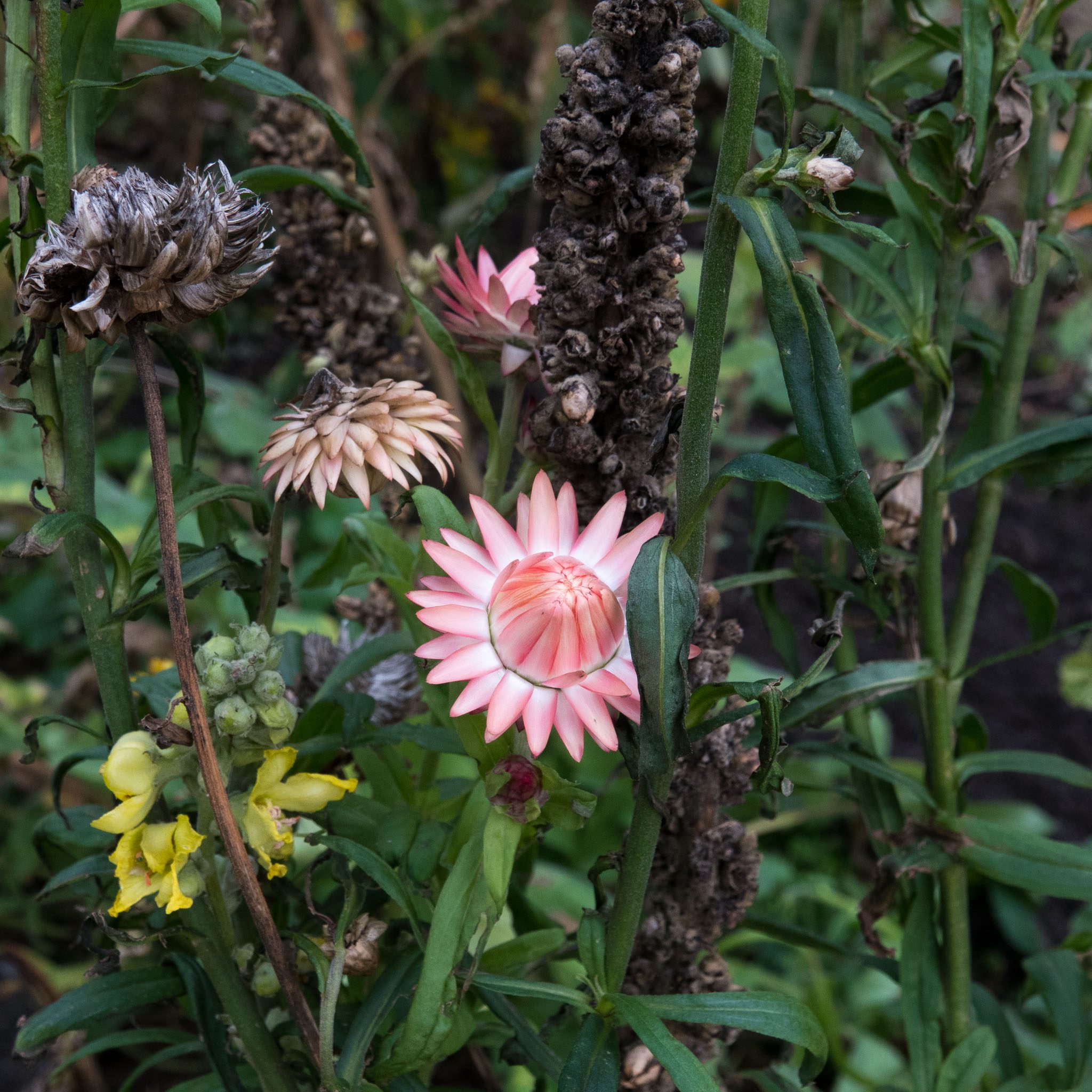 De temperaturen variëren nogal in deze maand. Het ene weekend voelt het nog zomers aan en in het volgende weekend is er sprake van nachtvorst en hier en daar ijsvorming. In de tuin bloeien nog de laatste bloemen en voor de tijd van het jaar ziet de tuin er nog groen uit. Aan winterklaar maken en opruimen doen we nu nog niet. Het is beter om zo veel mogelijk te laten liggen om insecten en andere dieren een schuilplek te geven.