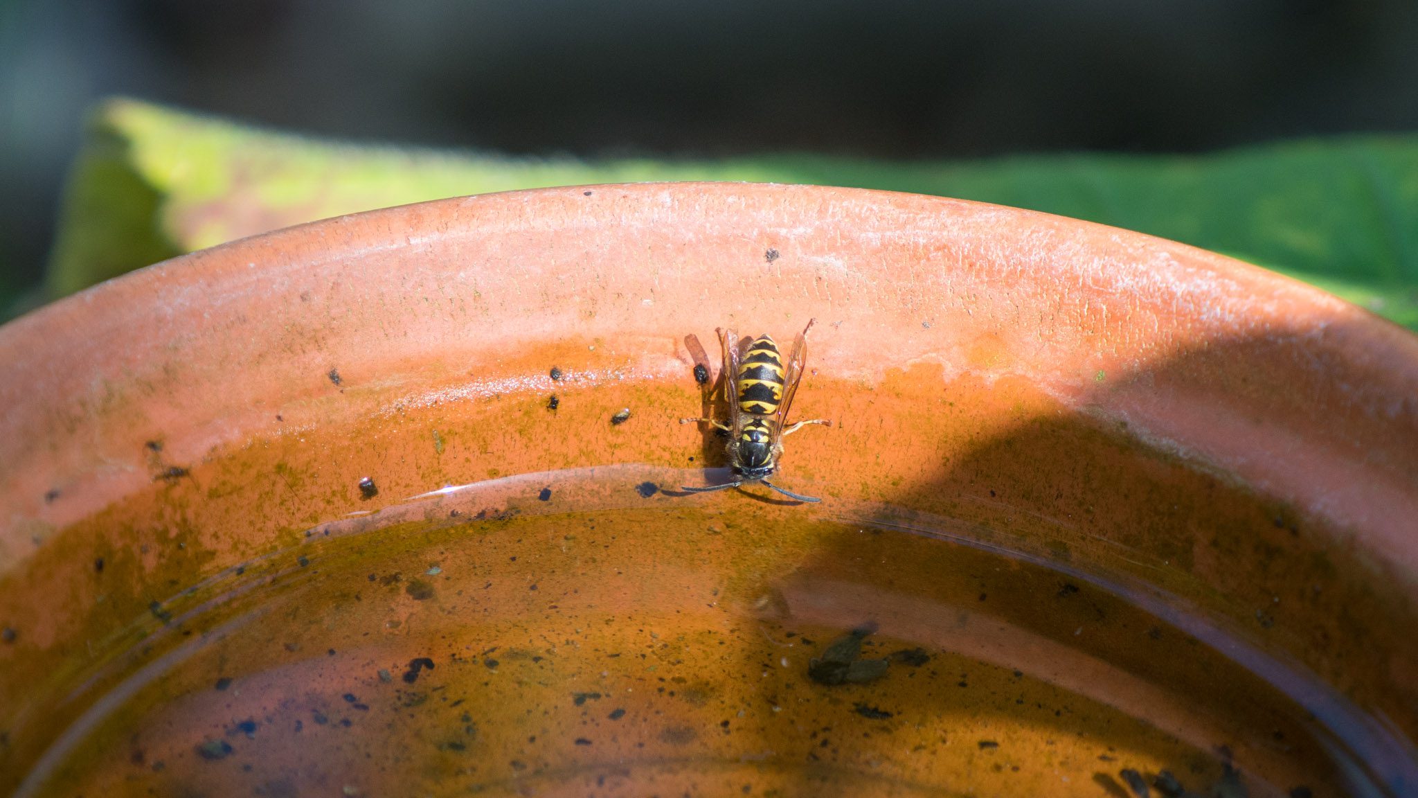 Het blijft maar zonnig en droog weer. De insecten weten de weg naar de bloemen in de tuin prima te vinden en voor de schotels met water is voldoende belangstelling. De eerste verschijnselen van de herfst dienen zich al aan.